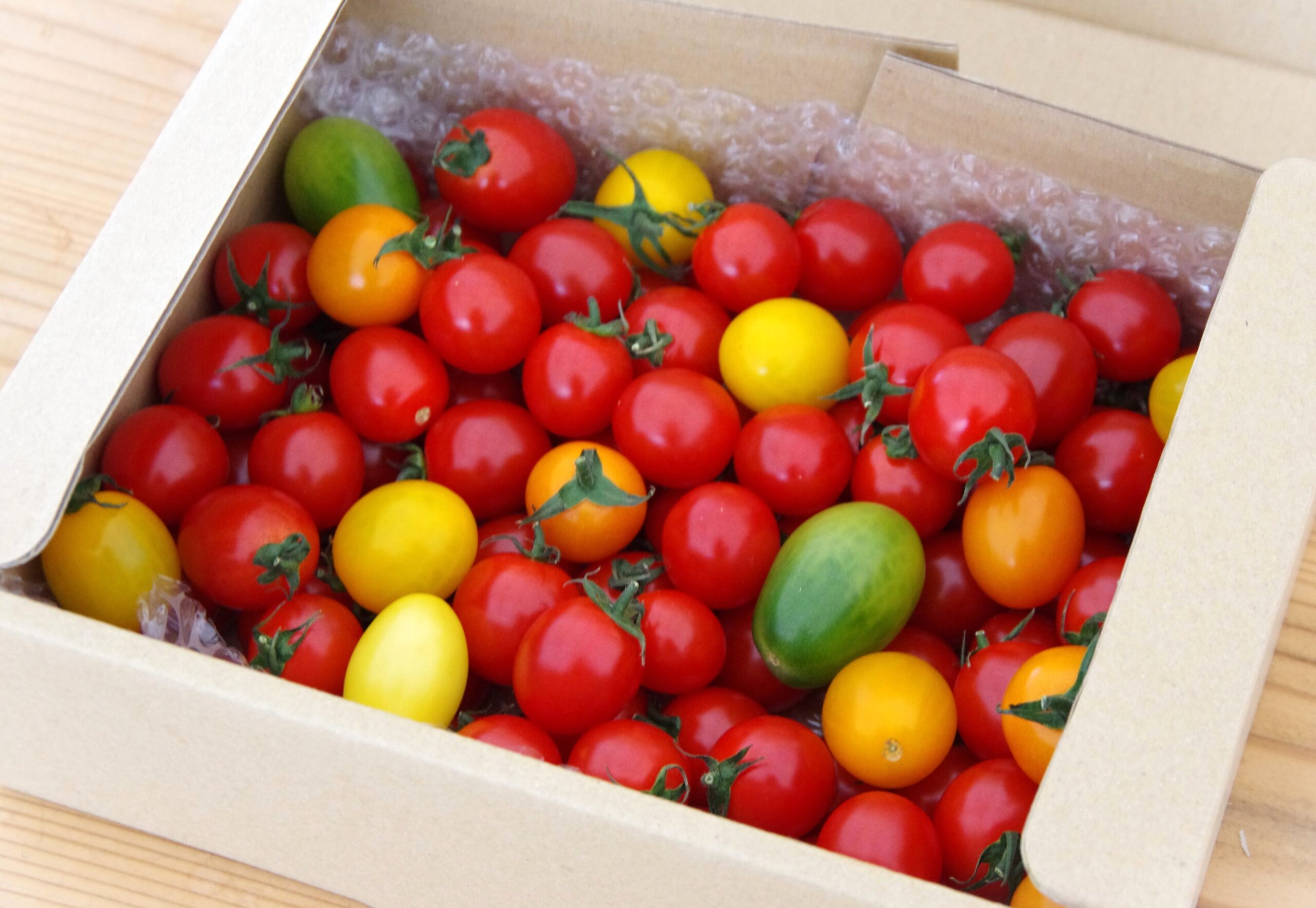 ※イエローやオレンジ、グリーンなどのカラーミニトマトは、季節によって収穫できる量が変わるため、写真と異なる内容になることがございます。